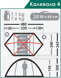 Масса палатки, кг (мин/макс): 7,1 / 7,6