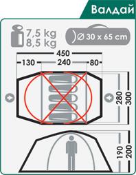Масса палатки, кг (мин/макс): 7,5 / 8,5