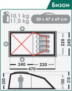 Габаритные размеры тента, см (l x b x h): 470 х 240 х 210