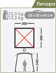 Габаритные размеры тента, см (l x b x h): 300 х 300 х 240