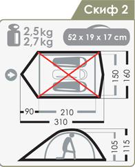 Масса палатки, кг (мин/макс): 2,5 / 2,7