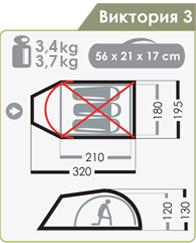 Масса палатки, кг (мин/макс): 3,4 / 3,7