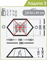 Масса палатки, кг (мин/макс): 3,45/3,75