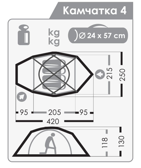 Габаритные размеры тента, см (l x b x h): 420 x 250 x 130