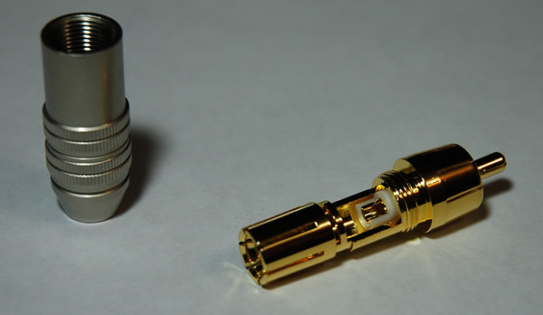 RCA разъём High-End c "обратным" цанговым зажимом (на кабель)из немагнитных материалов.