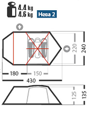 Габаритные размеры внутренней палатки, см (l x b x h) : 150 х 220 х 125