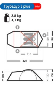 Масса палатки, кг (мин/макс): 3,8 / 4,1