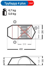 Габаритные размеры тента, см (l x b x h): 435 х 230 х 135