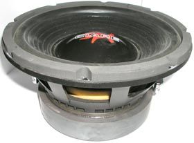 из целлюлозы с пропиткой с двойной звуковой катушкой. Диаметр 320 мм (12 дюймов ). Соревновательный динамик по SQ/SPL.