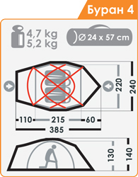 Масса палатки, кг (мин/макс): 4,7 / 5,2