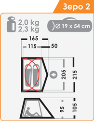Габаритные размеры внутренней палатки, см (l x b x h) : 115 х 205 х 95
