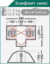 Габаритные размеры тента, см (l x b x h): 480 х 370 х 200