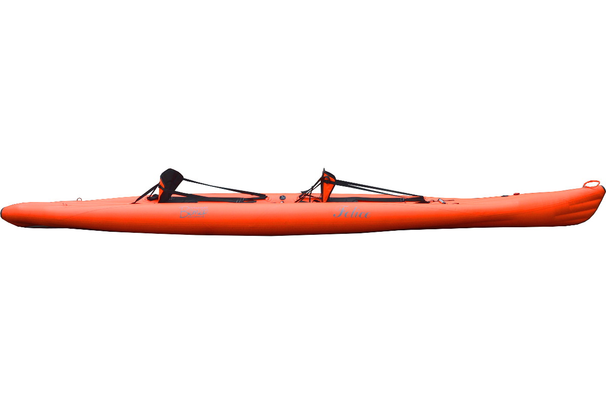 Надувной двухместный каяк "Лагуна 540" - отличный выбор для любителей путешествовать по морским и озерным просторам. Каяк сворачивается в небольшую упаковку и легко транспортируется, подготовка же каяка к плаванию занимает совсем немного времени. При этом, благодаря продуманной конструкции и современным материалам "Лагуна 540" - это полноценный морской каяк Sit-on-top (то есть с посадкой сверху), если и уступающий по ходовым качествам пластиковым собратьям по классу, то совсем немного. Этот двухместный морской каяк быстро набирает скорость и хорошо держит курс, обладает хорошей остойчивостью, и, в отличие от пластиковых каяков, легко переносится одним человеком и без проблем провозится в любом транспорте, будь то автобус, поезд, или самолет.