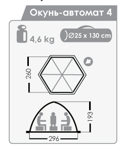Габаритные размеры внутренней палатки, см (l x b x h) : 296x260x193