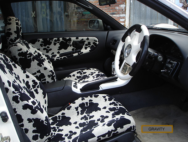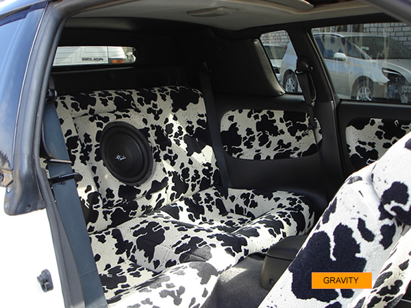 При этом «Мицуока» явно не «спорт-кар» - и салон с сиденьями в стиле «Recaro» к ней не подходит. Как всегда, нужное решение нашлось спонтанно – увидели в одном месте «лошадиную» (ассоциация с лошадью возникла сразу, а потом продавщица сказала что ткань назыается «пони») ткань, посмотрели – прикольная, ничего не скажешь. И переглянувшись – «Мицуока» !!!
